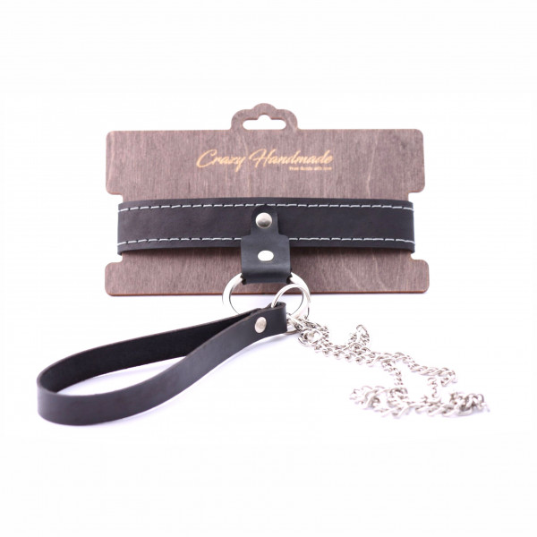 Стильный ошейник, из коллекции "Crazy Handmade" с металлическим поводком - отличный БДСМ аксессуар для самой незабываемой сессии!
